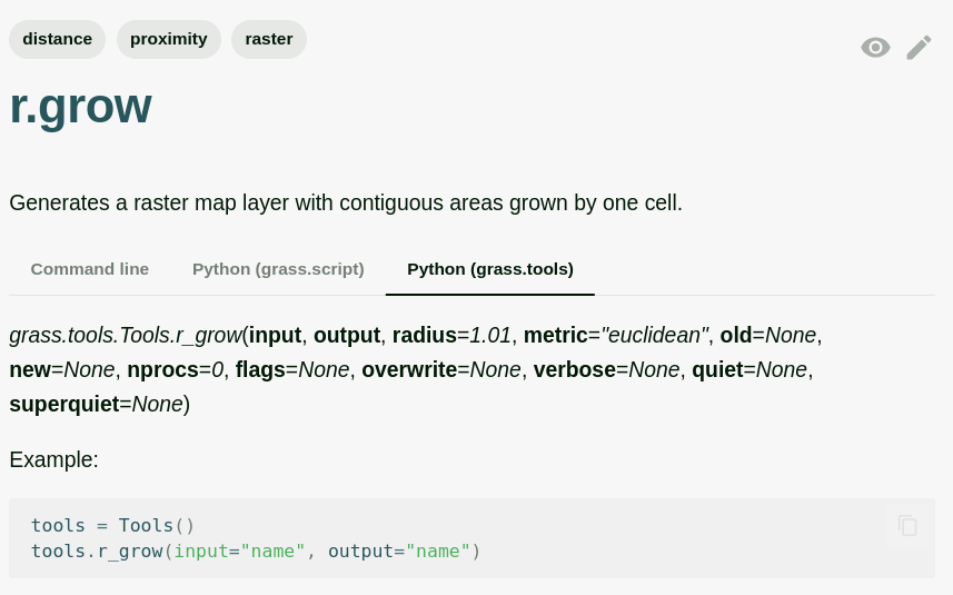 The GRASS Markdown documentation project resulted in a complete redesign of our user documentation. The modernized documentation integrates access to user and developer web pages, incorporates Python syntax into tool manuals, and features numerous improvements including better indexing and search. Each tool’s manual page now shows tabs for Command line, Python (grass.script), and Python (grass.tools) usage, making it easier for users to find the right syntax for their preferred interface. The work was done by Martin Landa, Markus Neteler, Corey White, Vaclav Petras, Anna Petrasova and others.